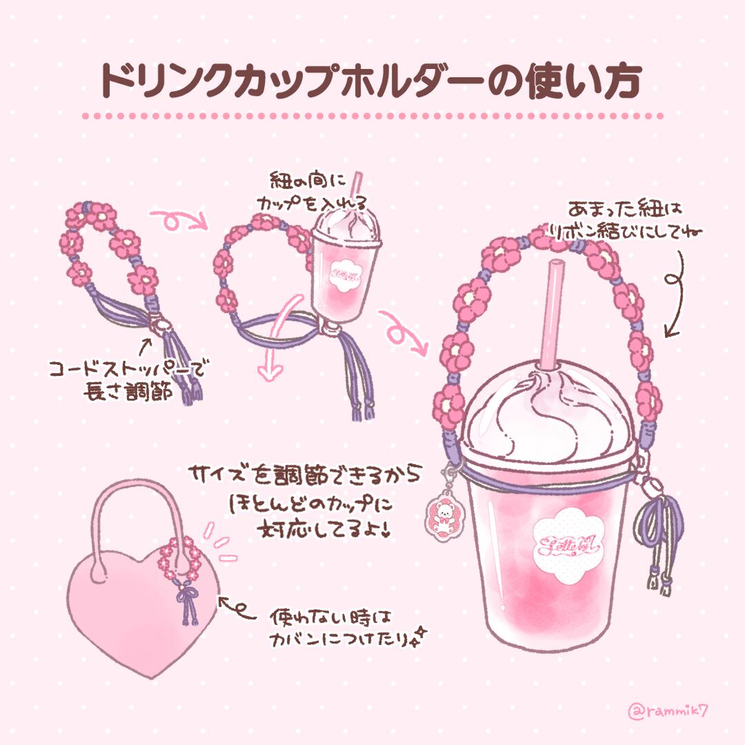 マクラメ糸を使ったお花が1色パターンのくまちゃんチャーム付きドリンクカップホルダー